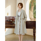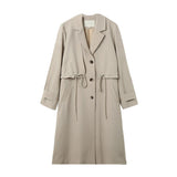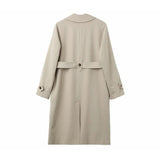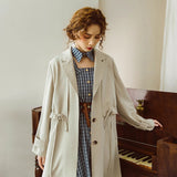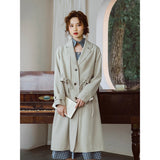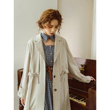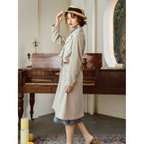 詩的な美しさと哲学的な深みを併せ持った色合いのトレンチコート。クラシカルなテーラードカラーに、フロントの大きめボタンとウエスト部分のドローコードがアクセントになっています。シンプルで直線的なシルエットながら、絞り加減で表情を変えられるデザイン。軽やかな生地感とミディ丈で、春から秋にかけてさらりと羽織れる、上品で清楚な雰囲気の一着です。