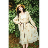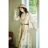 滲んだ花柄フレンチレトロワンピース