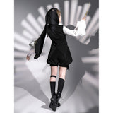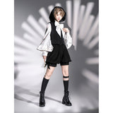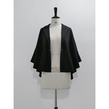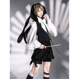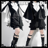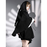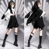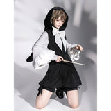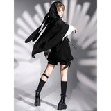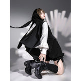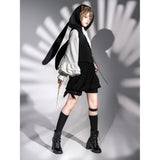 ウサ耳のフードが付いたショート丈のベストと、動きにドラマティックなシルエットを与えるマントと、ふわりとした膨らみのあるハーフパンツ。ゆるっとカジュアルに着こなしてみて。ディテールにこだわった存在感のあるアイテム。