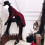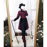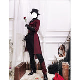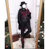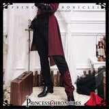 古き誓いを受け継ぐ公爵騎士みたいに演出してくれるロングパンツ。裾部分に施されたアシンメトリーな装飾や、メタルパーツがゴシックな要素を引き立てています。スリムフィットのシルエットで脚のラインを美しく強調し、洗練された印象を与えます。深みのあるブラックとバーガンディの配色がエレガントな雰囲気を放っています。