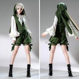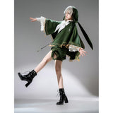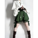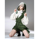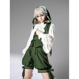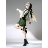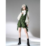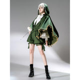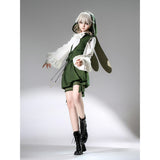 ウサ耳のフードが付いたショート丈のベストと、動きにドラマティックなシルエットを与えるマントと、ふわりとした膨らみのあるハーフパンツ。ゆるっとカジュアルに着こなしてみて。ディテールにこだわった存在感のあるアイテム。