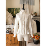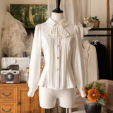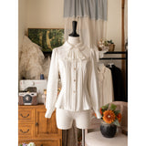 エレガントな英国のお嬢様みたいに演出してくれるブラウス。17世紀に流行したクラバットが装飾されており、胸元にはプリーツ、襟の縁にはレース刺繍が装飾されています。時代を超えて輝く永遠のスタイル。 洗練された気品を纏ったお嬢様に。