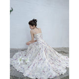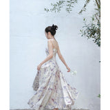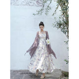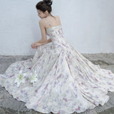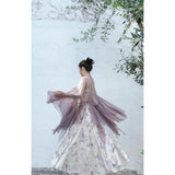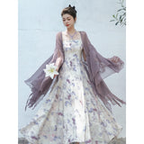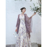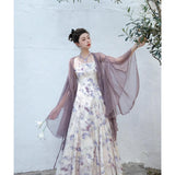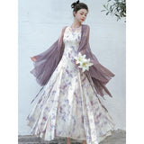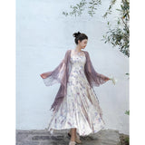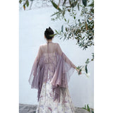 花の蜜を求めて、幻想的に舞う蝶々を描いたキャミソールワンピースと、透け感のあるシフォンカーディガン。たっぷりの生地量で仕立てたアイテム。上半身とウエスト部分はフィットするデザインで、ウエストから下は広がる優雅にシルエットになっています。カーディガンは落ち着きのある色合いで、ふんわりと広がる優雅なデザインとなるようにたっぷりの生地を使って仕立てています。やわらかな光を湛えた幻想世界へ誘われてみて。