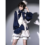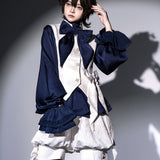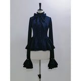 クラシックでエレガントなハイネックブラウス。特徴的な大きなリボンが首元にあしらわれており、華やかさを演出しています。袖口にはフリルがあり、ウエストから裾にかけて広がったペプラムデザインは、美しいシルエットに魅せてくれる。細部のディテールにこだわった存在感のあるアイテム。