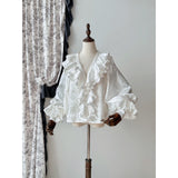 美しさと気品を兼ね備えた伯爵令嬢みたいに演出してくれるヴィクトリアンブラウス。フロント部分や襟元、袖口に存在感のあるフリルとラッフルが施されています。長いリボン状の袖口が特徴的で、動きが加わることで優雅で幻想的なシルエットを作り出します。滑らかな光沢を持つアイテム。ドラマティックでエレガントな雰囲気を放つお嬢様に。