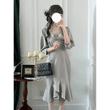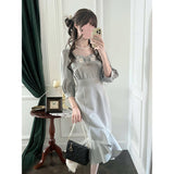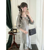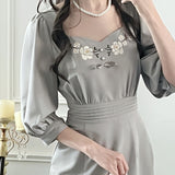 神聖な白さで凛と咲く白椿の花を胸元に刺繍したクラシカルなワンピース。ウエストはタック入りで美しいシルエットを強調し、裾は緩やかなマーメイドラインでエレガントな動きを加えてくれる。清楚で華やかな印象に仕上がっています。静寂の中で際立つ美しさを堪能してみて。