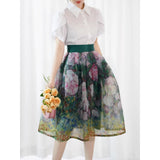 薔薇の油彩画オーガンジースカート