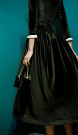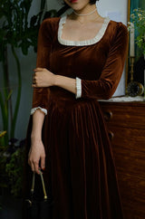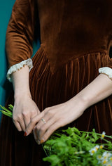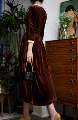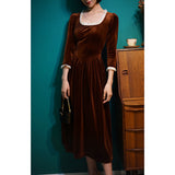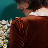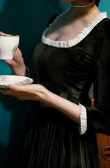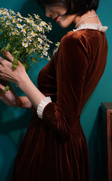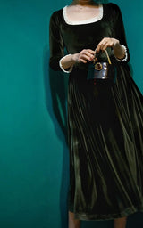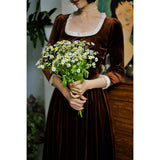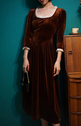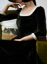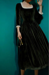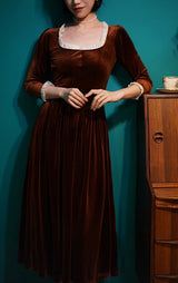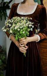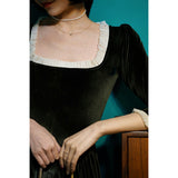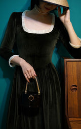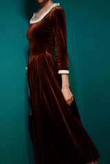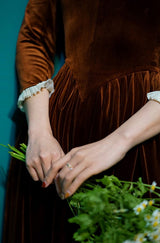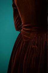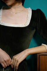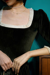 華麗なる貴婦人のような雰囲気に演出してくれるベルベットワンピース。ハイウエストでスタイル良く見えるシルエットにこだわりました。程よい丈感ですっきり見せながら上品さも演出してくれる一枚。