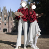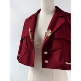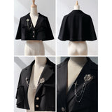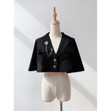 ワルツの旋律が甘美に響く貴族の舞踏会。美しき貴族のお嬢様みたいに演出してくれるエレガントなケープ。テーラードジャケットの要素を取り入れたスタイルで、ショート丈ながらも立体的な襟元とフロントのレイヤードディテールが洗練された雰囲気を演出します。
