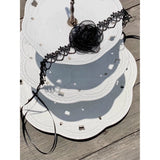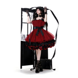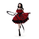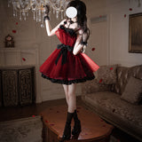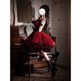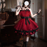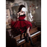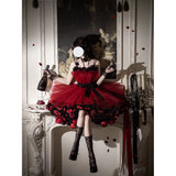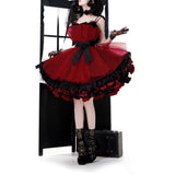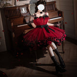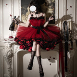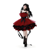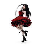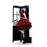 静かな闇に詩情を紡ぐ、暗夜の花束。情熱的な深紅のチュールを幾重にも重ねたジャンパースカート。胸元と黒薔薇が施され、視線を引き寄せるディテールに。ドラマティックで唯一無二の存在感を放つアイテム。