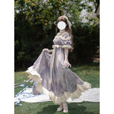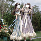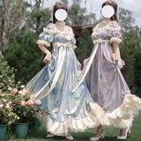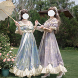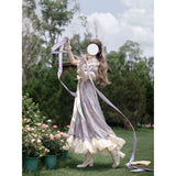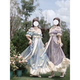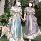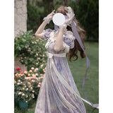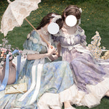 睡蓮の池の油彩画ヴィクトリアンワンピース - Light Purple[2025年10月上旬-10月下旬発送予定]