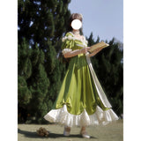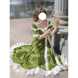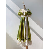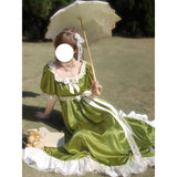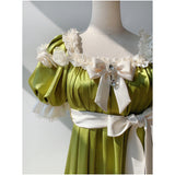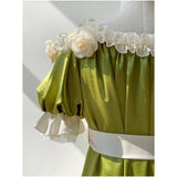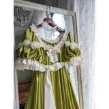 宮廷に舞い降りた公爵令嬢みたいに演出してくれるワンピース。光沢感のあるアイテムで、袖はふんわりとしたパフスリーブで、ネックラインには優美なフリルが施されています。裾に向かって優雅に広がるロング丈のシルエットは、ドラマチックなシルエットを演出してくれる。鮮烈で圧倒的な魅力を放って。