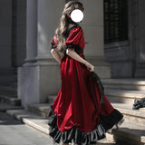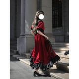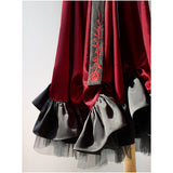 宮廷に舞い降りた公爵令嬢みたいに演出してくれるワンピース。光沢感のあるアイテムで、袖はふんわりとしたパフスリーブで、ネックラインには優美なフリルが施されています。裾に向かって優雅に広がるロング丈のシルエットは、ドラマチックなシルエットを演出してくれる。鮮烈で圧倒的な魅力を放って。