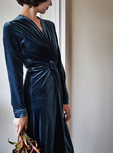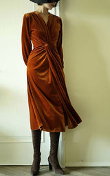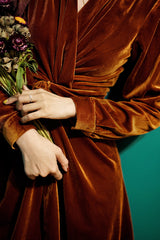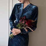 しなやかな女性らしいフォルムを可憐に彩ってくれるベルベットワンピース。細身のスタイルでフェミニンな雰囲気を醸し出してくれます。程よい丈感ですっきり見せながら上品さも演出してくれる一枚。