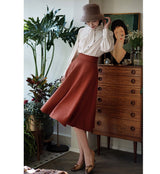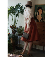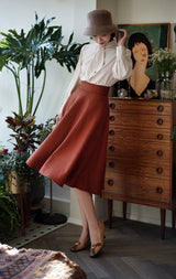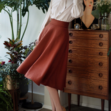 1950年代を彷彿とさせるクラシカルなアンブレラスカート。まるで映画女優みたいな雰囲気に。厚みのある生地となっており、同色のジャケットと合わせたセットアップコーデがおすすめ。エレガントで上品な貴婦人に。