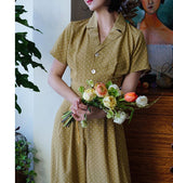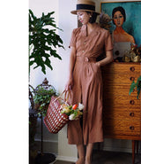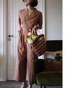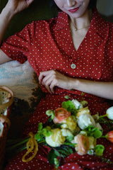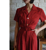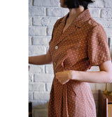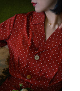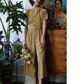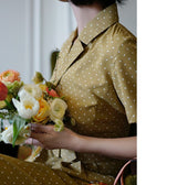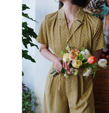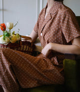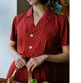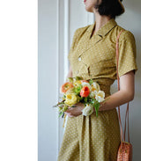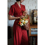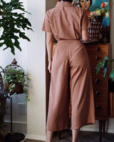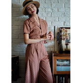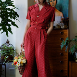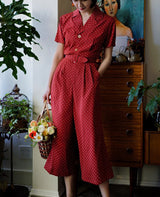 レトロな雰囲気が漂う水玉柄のジャンプスーツ。フォーマルなスタイルながらも、キッチリとしたスタイリッシュさの中に、カジュアルな雰囲気が漂います。ハイウエストでスタイル良く見えるシルエットにこだわりました。程よい丈感ですっきり見せながら上品さも演出してくれる一枚です。