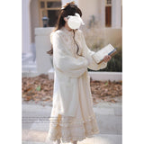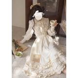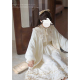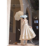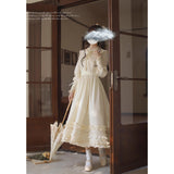 しなやかで美しい奏鳴曲の旋律に身を任せ、月明かりに照らされながら、想いを馳せるのはあの人のこと。優雅で気品溢れるお嬢様みたいに演出してくれるクラシカルなワンピース。大きめの襟には花束が刺繍されており、カフス部分には編み上げが装飾されています。ふわりと膨らむスカート部分が優雅でロマンティックな印象を与えてくれる。