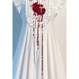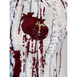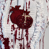 可憐さと不穏さが同居したダークファンタジー的な世界観を醸し出した刺繍アクセサリー。解剖図のような心臓かと思いきや、たっぷりの実が詰まった柘榴。ワンピースに滴り落ちているのは、血痕ではなく、果実の汁なのかもしれない。