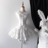 西洋貴族のヴィクトリアントップスとフリルスカート - White