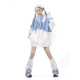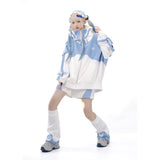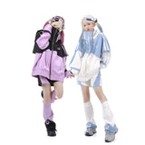 可愛らしい地雷系女子に。病みかわいい要素とカジュアルな要素を兼ね備えたパステルカラーのビッグシルエットのジャケットとパンツとレッグウォーマー。SFの世界を彷彿とさせる近未来的なスタイル。カジュアルに着れちゃう地雷服コーデを堪能してみて。