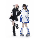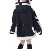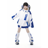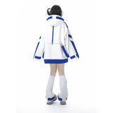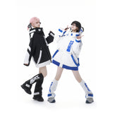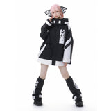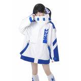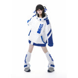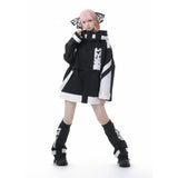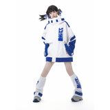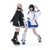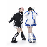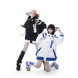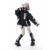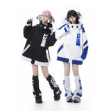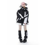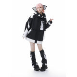 宇宙の神秘とテクノロジーを組み合わせた現代的なファンタジーを想起させるフードジャケットとハーフパンツとレッグウォーマー。病みかわいい要素とカジュアルな要素を兼ね備えたビッグシルエットなアイテム。カジュアルに着れちゃう地雷服コーデを堪能してみて。