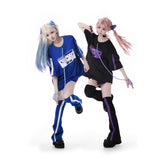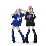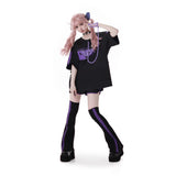 すでに存在しないことを意味する"404-error"と可愛らしいイラストを組み合わせたセットアップ。Tシャツは袖にラインが入ったスポーティーなデザイン。チェーンアクセサリーがデジタルチックな非日常感をプラスしてくれる。Tシャツの下から覗くショートパンツと、ラインの入ったレッグカバーを合わせて、カジュアルなコーデを堪能してみて。