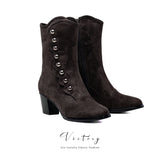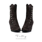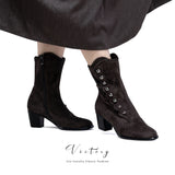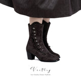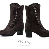 Victorian Round Toe Buttoned Short Boots - Dark Brown[2025年11月上旬-11月下旬発送予定]