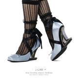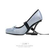 Demi Pointe High Heel Pumps (Lace-up) - Light Blue × Black / Black Heel[2025年11月中旬-12月上旬発送予定]