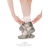 バレリーナのDemi Pointe(ドゥミ・ポアント)から着想を得たハイヒールパンプス。艶めきのあるサテンと、足首に巻きつけるリボンがエレガントな雰囲気を放っています。独創性が奏でる一瞬の美。美しさという圧倒的な存在感をあなたに。
