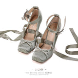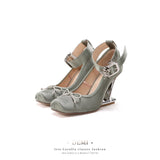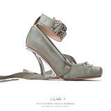 Demi Pointe High Heel Pumps (Double Ankle Strap) - Gray Green / Silver Heel[2025年11月中旬-12月上旬発送予定]