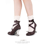 バレリーナのDemi Pointe(ドゥミ・ポアント)から着想を得たハイヒールパンプス。艶めきのあるサテンと、足首に巻きつけるリボンがエレガントな雰囲気を放っています。独創性が奏でる一瞬の美。美しさという圧倒的な存在感をあなたに。