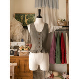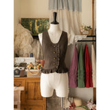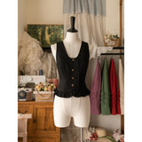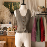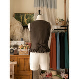 エレガントな英国のお嬢様みたいに演出してくれるフリルベスト。前立てから裾部分にかけて装飾されたフリルが華やかな印象を与えてくれる。時代を超えて輝く永遠のスタイル。洗練された気品を纏ったお嬢様に。