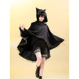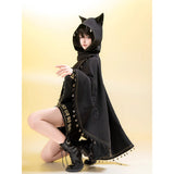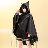 古代エジプトの猫の女神からインスピレーションを受けたフードのついたマント。猫耳が付いたフードがポイントで、ファンタジー感のある可愛らしい印象を与えます。施された縁飾りが動くたびに揺られます。ファンタジックな世界に誘われてみて。