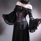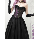 艶やかな煌めきを放つ刺繍コルセット。小さなビーズのついたフリルのレースが装飾されており、バックにはサイズ調整可能な編み上げが施されています。独創性が奏でる美しさ。エレガンスという魔法をかけたドラマティックな世界へ。
