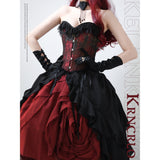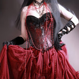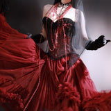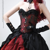 艶やかな煌めきを放つ刺繍コルセット。小さなビーズのついたフリルのレースが装飾されており、バックにはサイズ調整可能な編み上げが施されています。独創性が奏でる美しさ。エレガンスという魔法をかけたドラマティックな世界へ。
