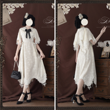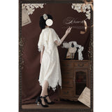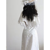 花を翔る蛾蝶のジャンパースカートとショール - Ivory
