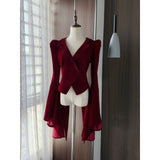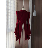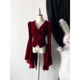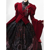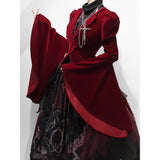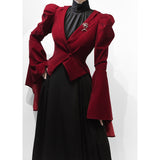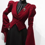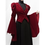 ゴシックな美学が詰まった、独特のシルエット。膨らみのある肩部分と、大きく広がるベルスリーブが特徴的。長く伸びた燕尾カットが、クラシカルな貴族の雰囲気を演出しています。後ろ姿に秘密を抱える、ゴシックなロマンスを表現したいあなたへ。