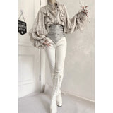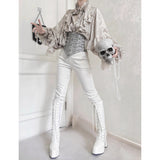 解剖学や標本、病理的な美しさに着想を得たコルセット。浮かび上がる手骨。それはまるで遺された美の痕跡がワルツを奏でるかのような、静かで劇的な存在感を放ちます。ゴシックでダークな幻想の世界を纏ってみて。