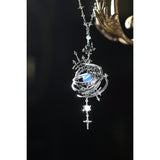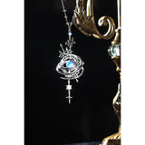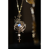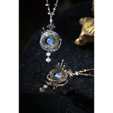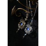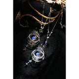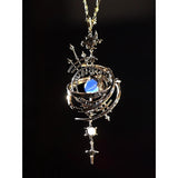 真っ青な天球を中心に、星々の世界を映し出した首飾り。星々が永遠に巡る、宇宙のメリーゴーラウンド。複雑かつ精巧にデザインされたアクセサリー。 星々の物語を紡ぎ出す科学と芸術の融合。神秘的で幻想的な雰囲気を放っています。