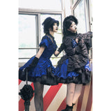 優雅で華やかな貴族のお嬢様に。繊細なジャカード生地とレース装飾が美しいクラシカルなワンピースと、たっぷりのフリルとレースが施されたジャンパースカート。ワンピースは、胸元のフリルとボタン、ドレープ状に絞られたスカート部分が優雅な立体感を演出しており、甘さと気品を併せ持っています。ジャンパースカートは、ブラウスとの重ね着によって、袖元のボリュームフリルとレースの繊細さが加わり、よりロマンティックな印象に仕上がります。