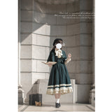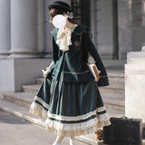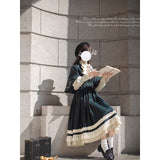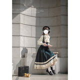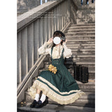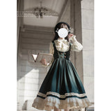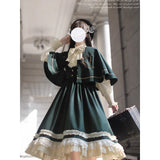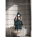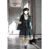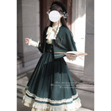 魔法学校のお嬢様みたいに演出してくれるジャンパースカートとマントとケープとブラウス。ジャンパースカートは、裾部分に繊細なレースとプリーツの装飾が施されており、ウエスト位置が高いのが特徴的。ラインが入ったクラシカルなデザインのマントやケープを羽織ると、優雅なシルエットを演出してくれる。物語の世界に誘われてみて。