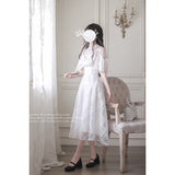 純白の令嬢のケープトップスとコルセットスカート
