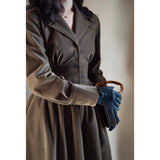 古典的でロマンティックな空気を纏ったワンピース。冬の朝に立ちこめる霧のよう。それだけで凛とした上質感を纏い、静かな気品を感じさせます。胸元は程よくゆとりを持たせ、ワイドなウエストラインが特徴的。身体のラインにフィットしながら、しなやかなウエストラインを美しく描き出します。Aラインの大きく広がるシルエットは、落ち着いた優雅さを保ち、歩くたびにスカートが静かに揺れます。生地には厚みのあるマットベルベットを使用しています。時を超えて受け継がれる、古き良き優雅さの余韻が残っています。