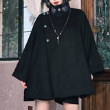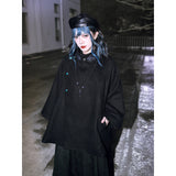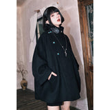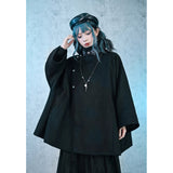 闘魚の刺繍ウールケープコート