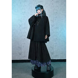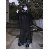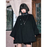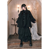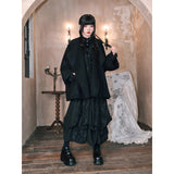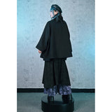 深い黒を基調に、肩から裾へと静かに広がるケープコート。流れるような落ち感と重みのある生地感が威厳を漂わせ、首元には闘魚〈ベタ〉を思わせる刺繍が施され、その優雅な曲線と鋭さを秘めた意匠が、静謐な美しさの奥に秘められた闘争性と孤高さを雄弁に物語っています。