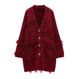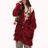 Deep Red Big Knit Cardigan
