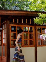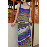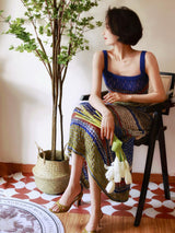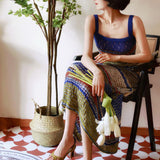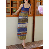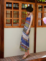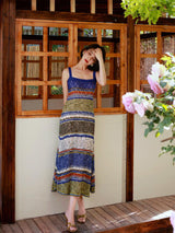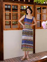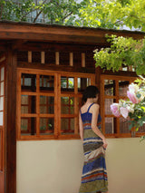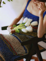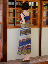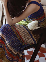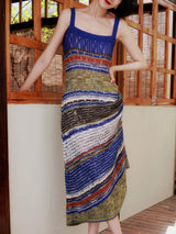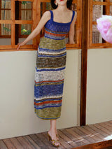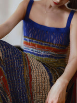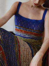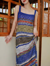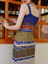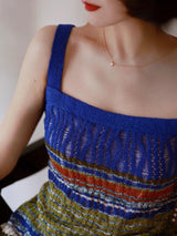 群青の油彩画ニットキャミソールワンピース