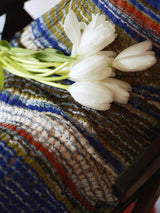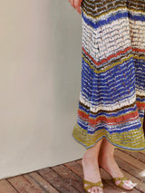 群青色に染まった空を油絵具で描いたようなニットキャミソールワンピース。異なるカラーを重ね合わせたグラデーションは地平線の彼方を彷彿とさせる。ストラップはわずかに幅が広く、裏地も付いています。カーディガンを羽織ったコーデもおすすめです。