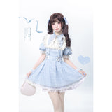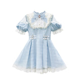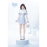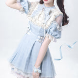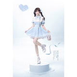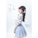 儚さと美しさの交錯。まるで天使が舞い降りたかのような幻想的な雰囲気が漂うワンピース。透明感を強調した水色がフェミニンな印象を与え、スカートの裾がふわりと広がり、歩くたびに夢幻的な揺れ感を演出します。静寂と鼓動が交差する一瞬を纏って。