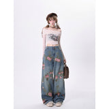 華麗に咲き乱れる栄華の象徴である牡丹の花を描いたワイドデニムパンツ。ボリュームのあるルーズなデザインで、カジュアルな雰囲気を演出し、柔らかいピンクの花とグリーンのリーフ柄が施され、フェミニンなエッセンスをプラスしています。